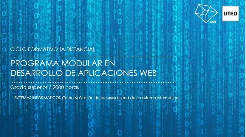 Portada Tema 6: Gestión de recursos en red de un sistema informático