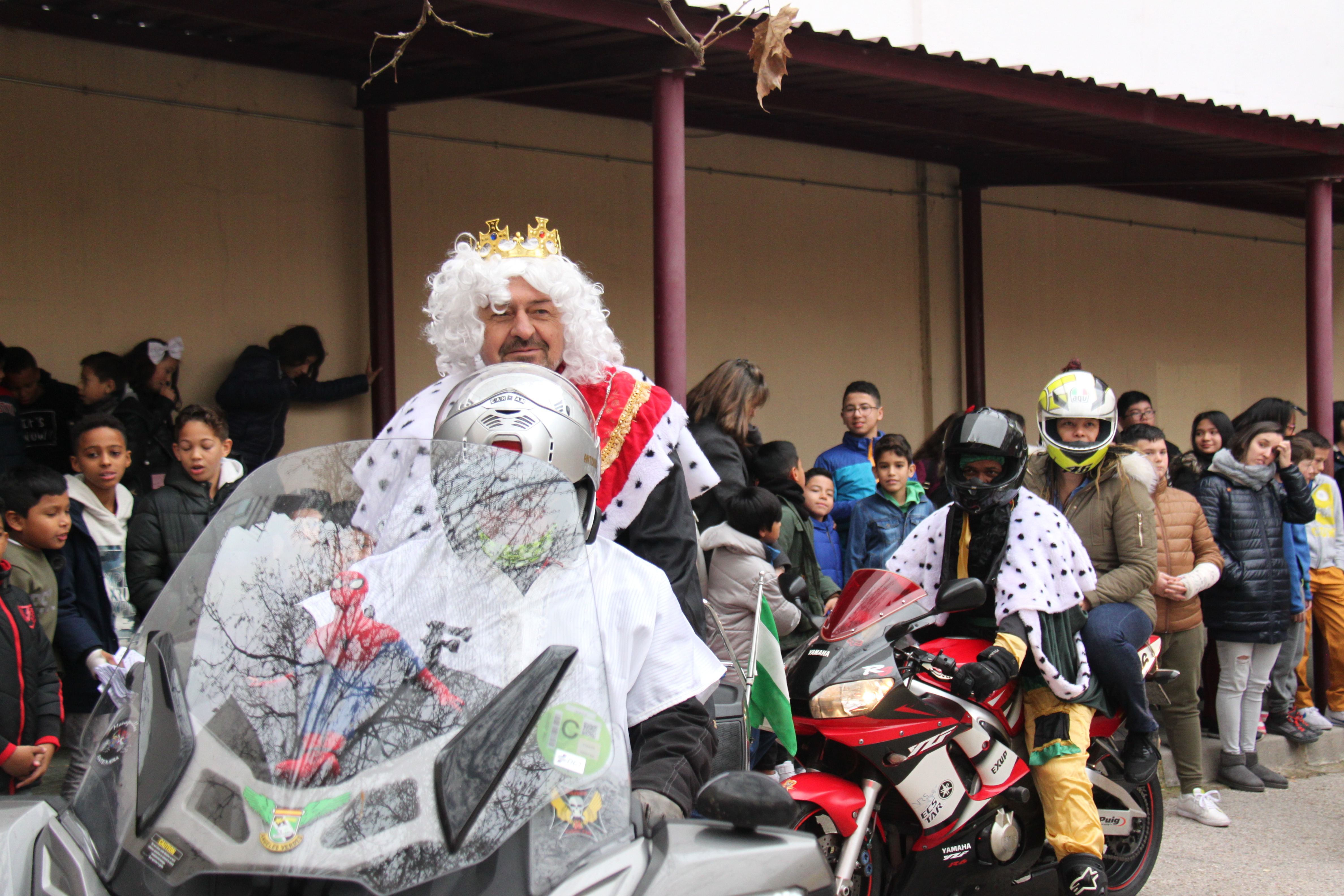 Visita de sus Majestades los Reyes Magos al colegio Luis Bello en moto 2018 10