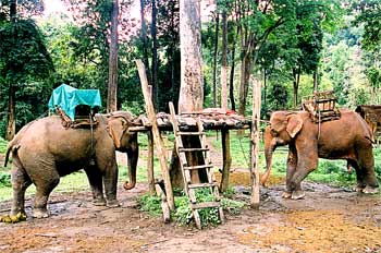 Elefantes de transporte en puerto de acceso, Tailandia - Contenido educativo