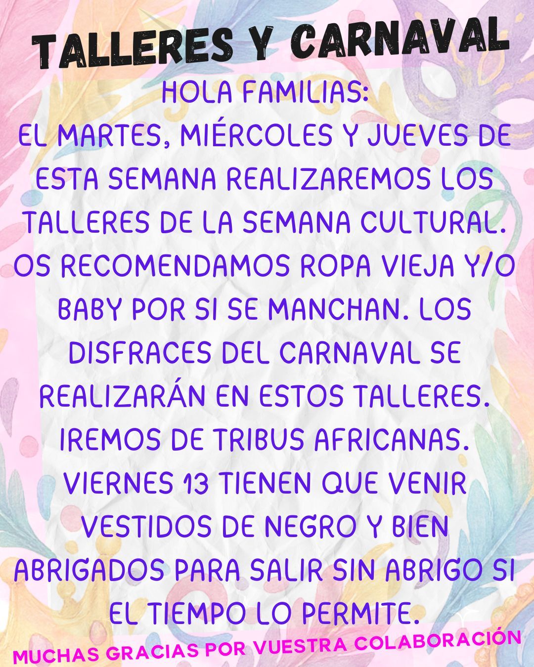 TALLERES Y SEMANA CULTURAL - Contenido educativo