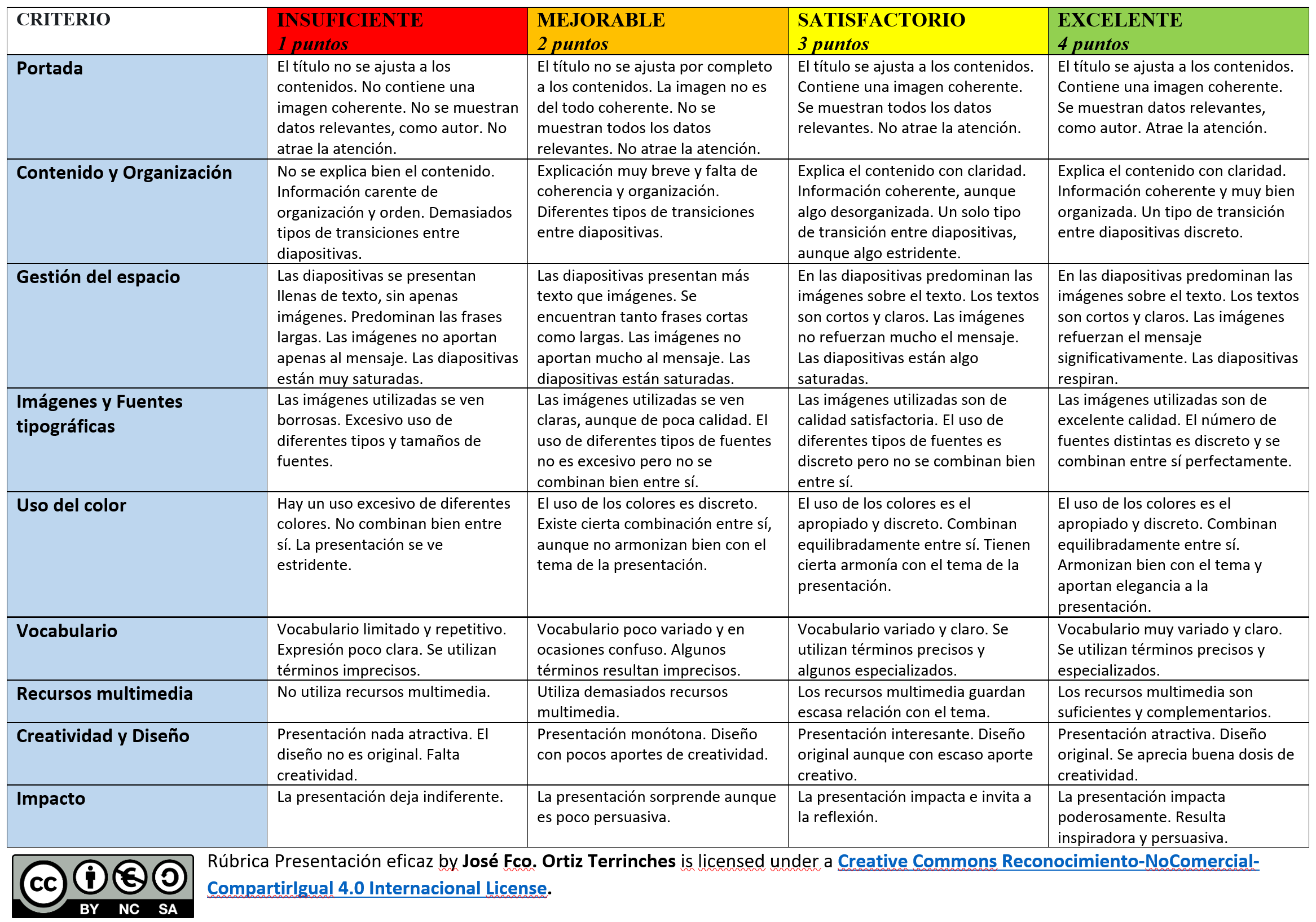 Rúbrica presentación eficaz - Contenido educativo