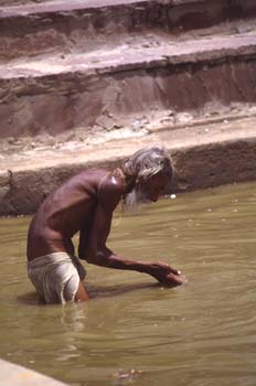 Peregrino haciendo sus abluciones en el lago sagrado de Pushkar - Contenido educativo