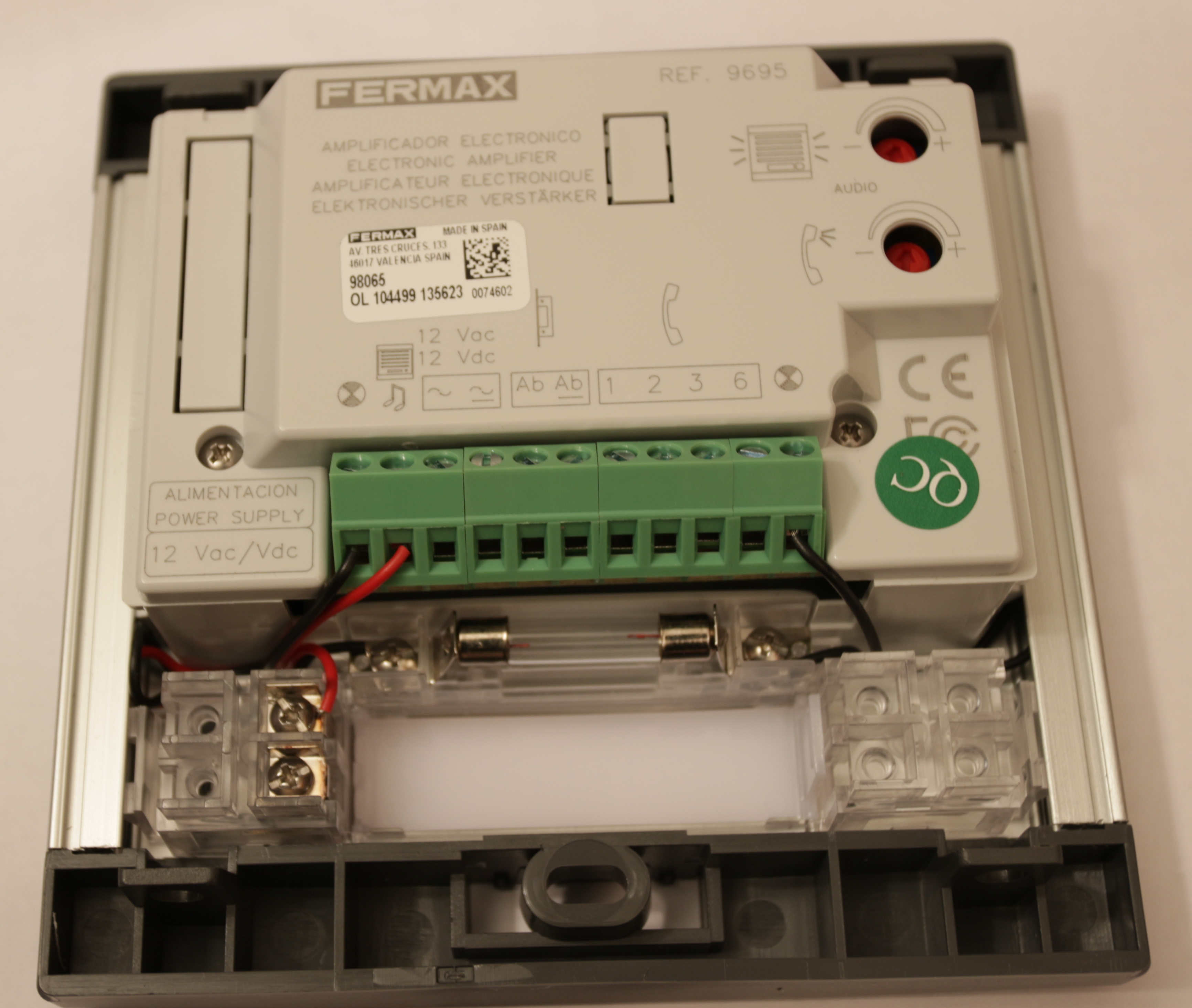 - Panel trasero de conexión de un portero de una vivienda de Fermax