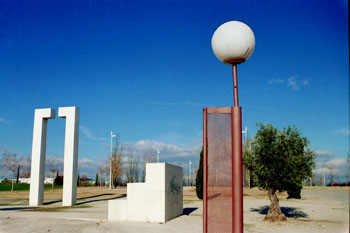 Farola y esculturas modernas