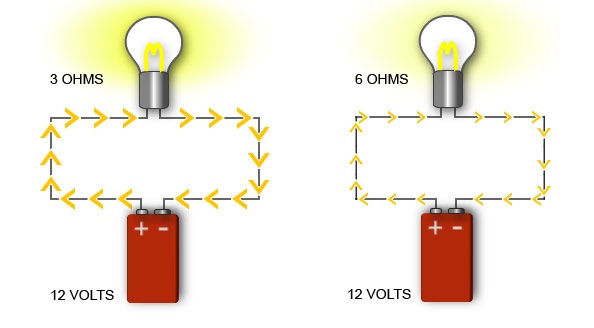 The more resistance, the less brigh.