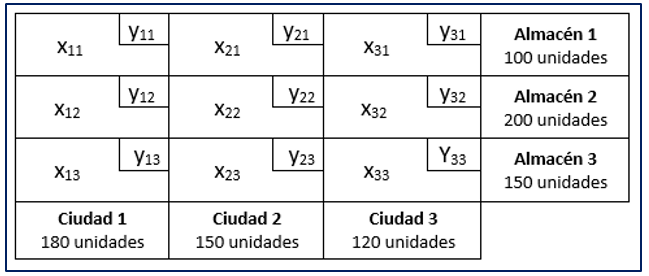Tabla de transportes (matriz) - Contenido educativo