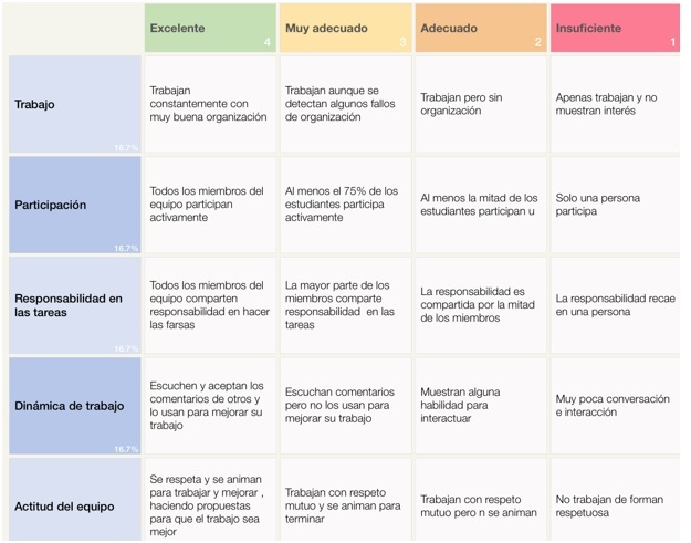 rúbrica cooperativo