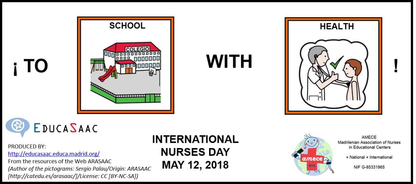 AMECE (Madrilenian Nurses Association in Educational Centers) asked EducaSAAC to create a poster with pictograms for a slogan, to celebrate the International Nurses Day . May 12, 2018