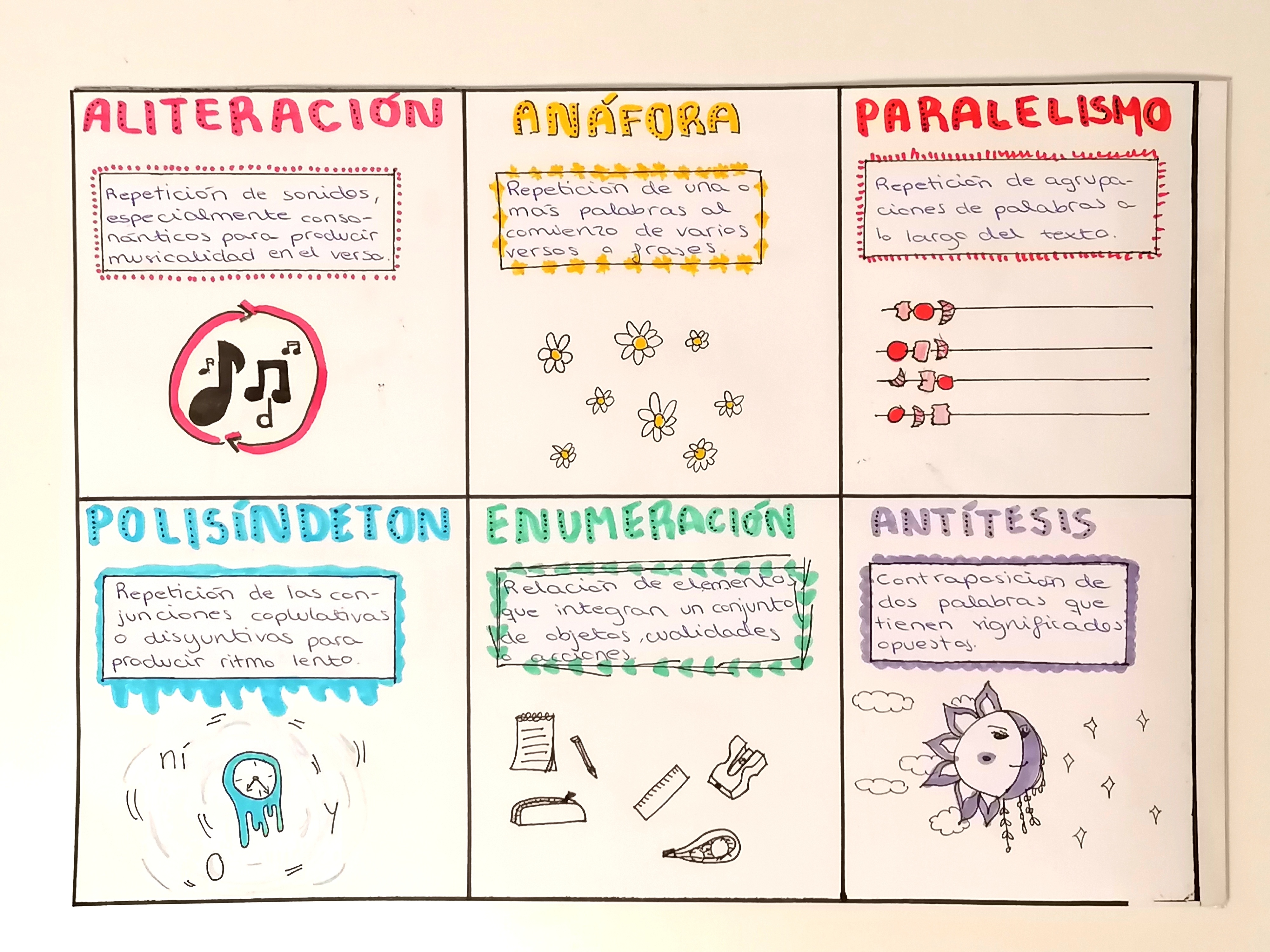- Cartel elaborado por Paola Montero, de 1º ESO D, para sintetizar las principales figuras literarias