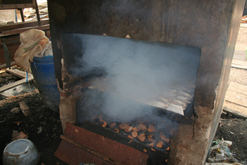 Ahumando pescado, Jakarta, Indonesia