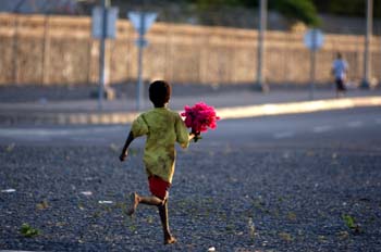 Niño con flores, Rep. de Djibouti, áfrica - Contenido educativo