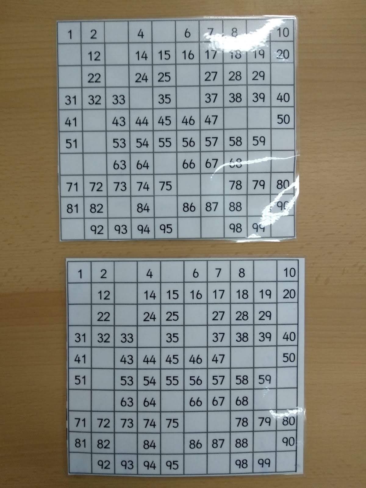 Tabla del 100 para completar