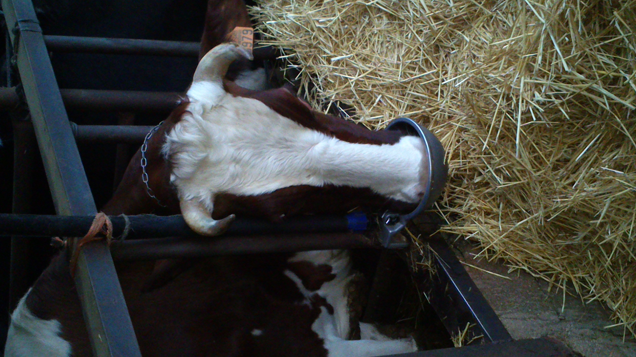 Vaca lechera bebiendo en la vaquería