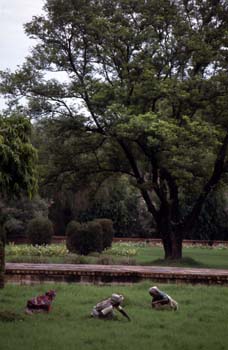 Trabajadores limpiando los jardines del Taj Mahal, Agra, India - Contenido educativo