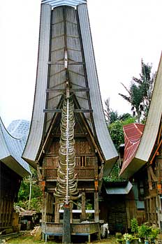 Detalle de fachada de casa barco frontal, Sulawesi, Indonesia - Contenido educativo