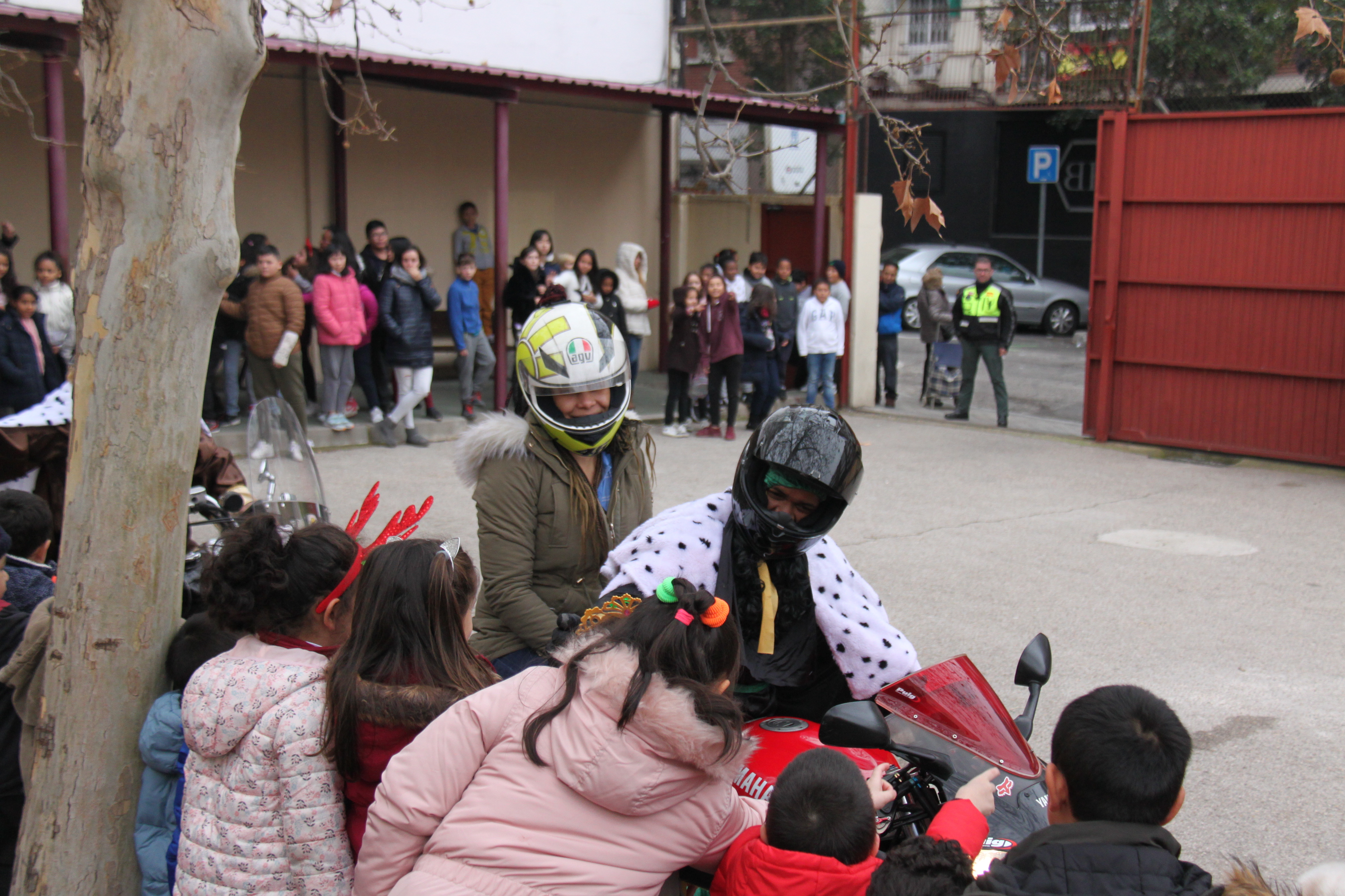 Visita de sus Majestades los Reyes Magos al colegio Luis Bello en moto 2018 20