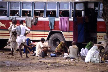 Visitantes de Delhi, haciendo vida alrededor de su autobús, Delh - Contenido educativo
