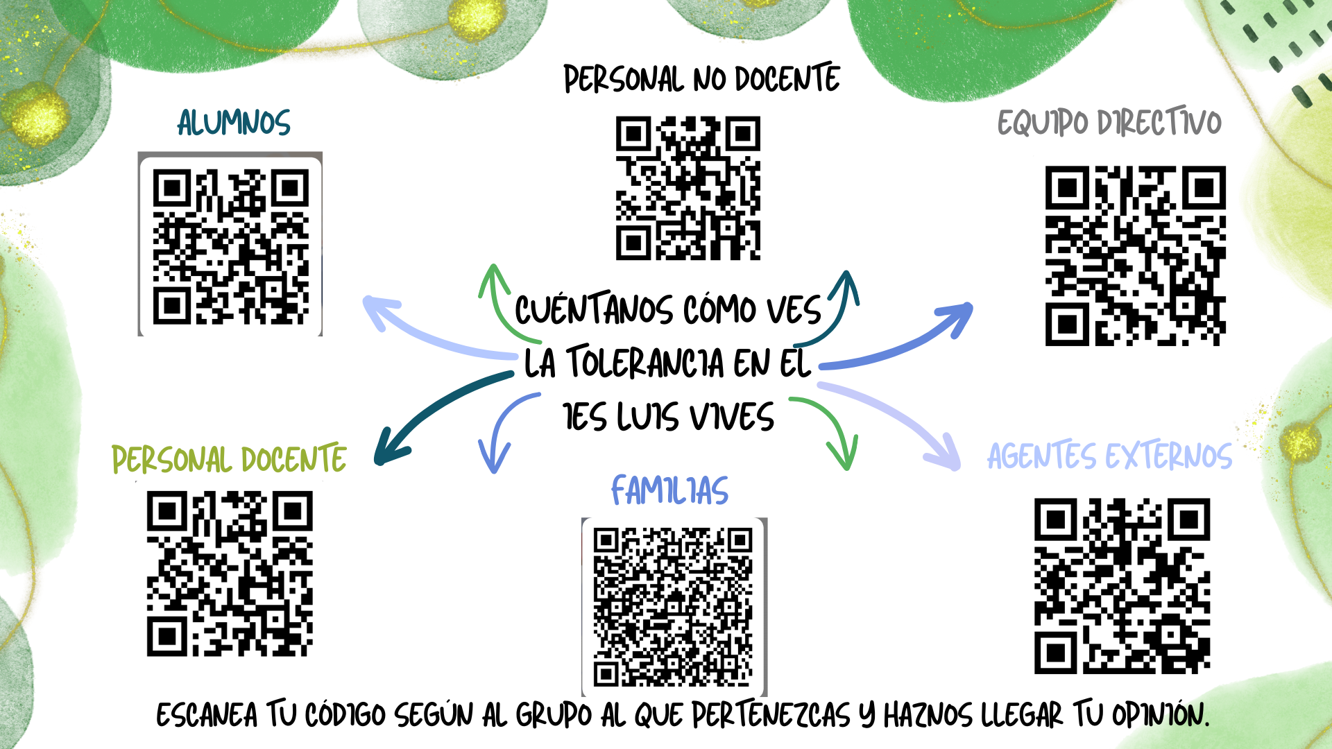Infografía para acceder a los formularios dirigidos a la comunidad educativa del IES Luis Vives sobre la percepción del clima de Tolerancia en el el curso 25-26-