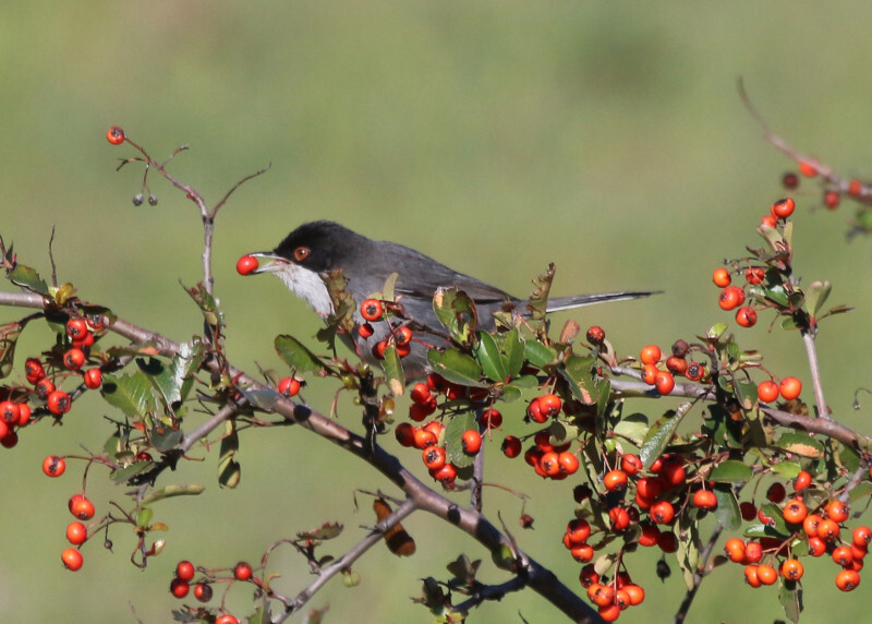 - Curruca cabecinegra comiendo frutos rojos junto a la laguna de Maripascuala en el parque de Polvoranca (Leganés)