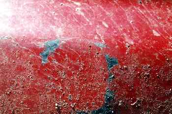 Chapa de color rojo con manchas de tierra
