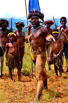Hombre a punto de usar lanza, Irian Jaya, Indonesia - Contenido educativo