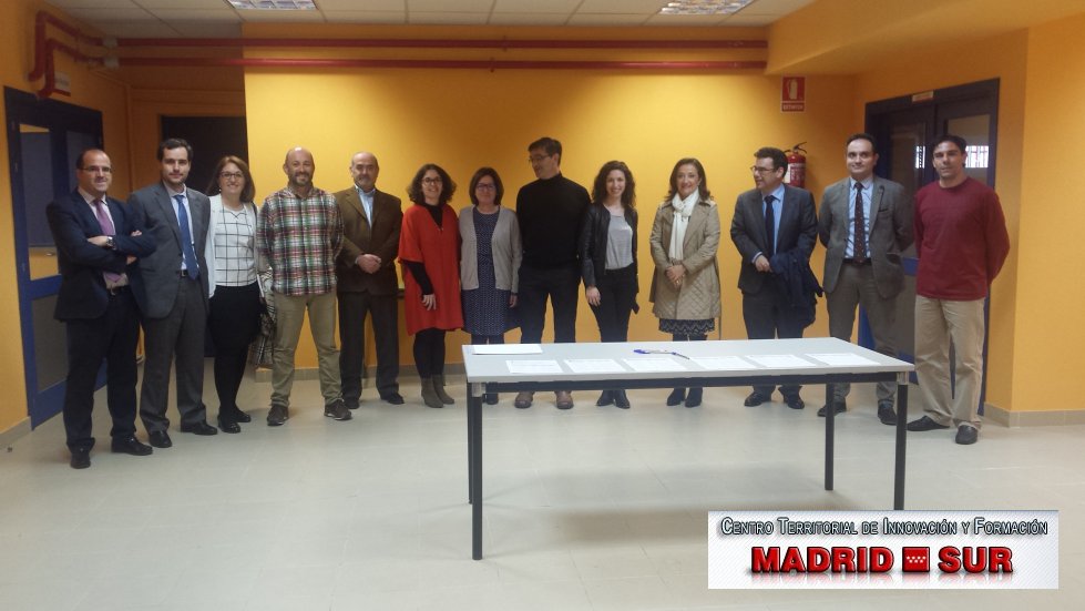 - De izquierda a derecha: Sr. D. Sebastián Huerta González, Técnico de Apoyo de la Dirección General de Innovación, Becas y Ayudas a la Educación, Sr. D. David Cervera Olivares, Subdirector General de Programas de Innovación, Sra. Dña. María del Carmen Jiménez Gil, Jefa del Servicio de Registro de Formación Permanente del Profesorado, Sr. D. José María Peña Blázquez, Asesor de Ciencias del CTIF Madrid-Sur, Sr. D. Manuel Ángel López Terán, Secretario del CTIF Madrid-Sur, Sra. Dña. María Luisa Casado García, Asesora de Humanidades del CTIF Madrid-Sur, Sra. Dña. Pilar Muñoz Yubero, Asesora de Infantil y Primaria del CTIF Madrid-Sur, Sr. D. Juan José Ruiz Castroviejo Vilalta, Asesor de Ciencias del CTIF Madrid-Sur, Sra. Dña. María del Carmen Fernández Arias, Asesora de Lenguas Extranjeras del CTIF Madrid-Sur, Ilma. Sra. Dña. Carmen González Fernández, Viceconsejera de Educación no Universitaria, Juventud y Deporte, Ilmo. Sr. D. Ismael Sanz Labrador, Director General de Innovación, Becas y Ayudas a la Educación, Ilmo. Sr. D. Manuel Bautista Monjón, Director de Área Territorial Madrid-Sur, y Sr. D. Antonio Grande Rubio, Asesor de T.I.C. del CTIF Madrid-Sur.