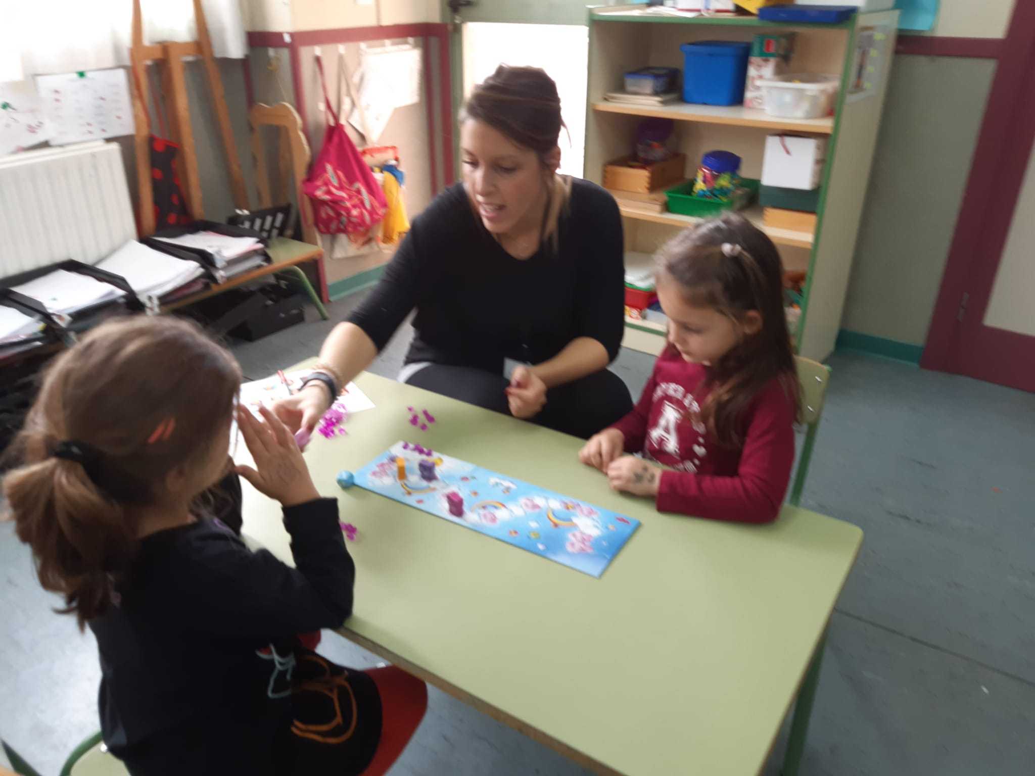 - Los alumn@s de infantil 4 años aprenden a jugar con juegos de mesa de diferentes tipos. Aprenden a cooperar, a no ganar siempre, a regalar, a compartir, aprecian la espera como parte del juego y disfrutan de un ratito con sus familias las cuáles vuelven a ser niñ@s. El aprendizaje compartido tiene mucho más éxito porque genera confianza y estrecha vínculos.