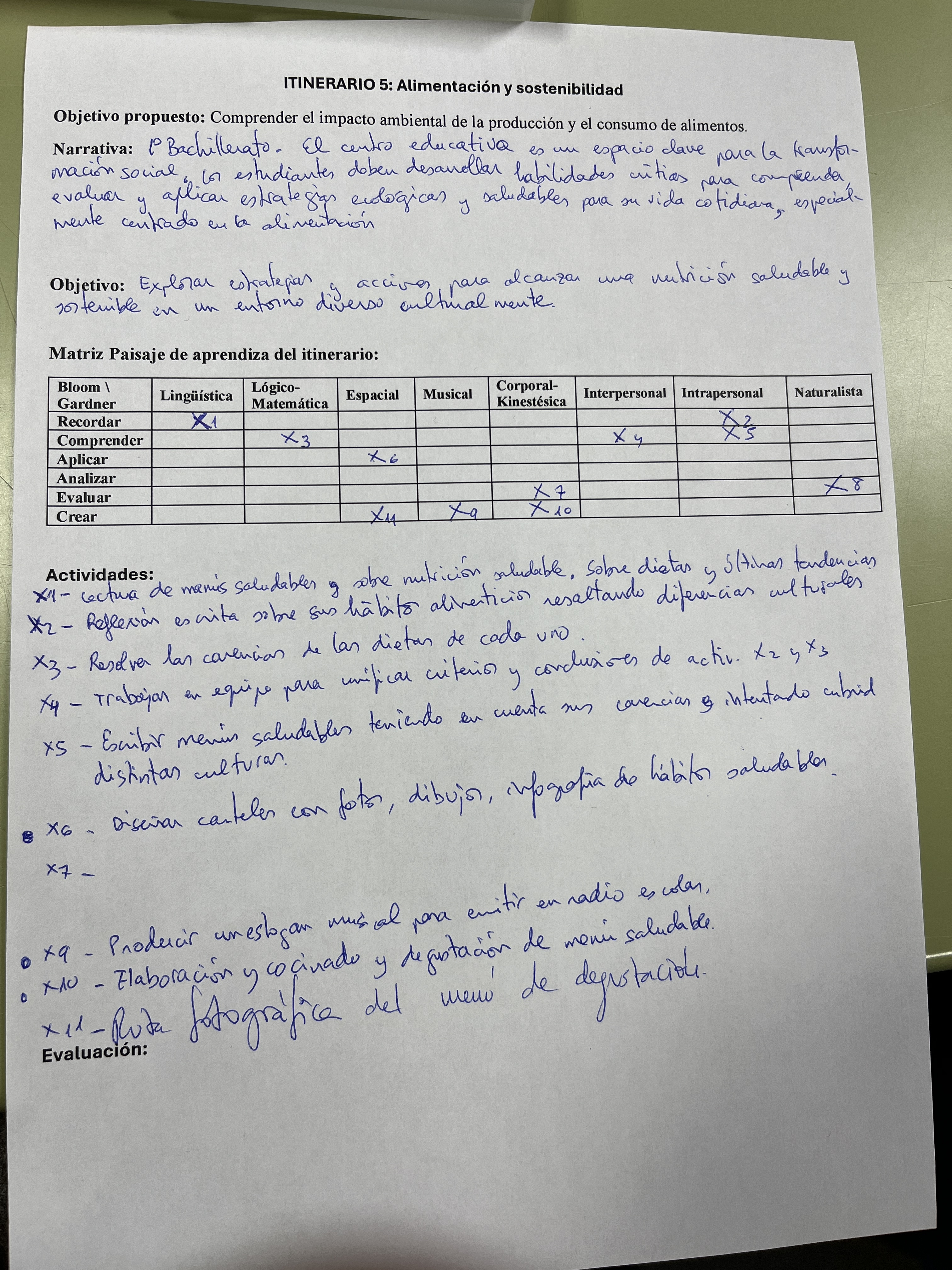 Ejemplo de diseño de actividades siguiendo la metodología de paisajes de Aprendizaje e Inteligencias de H. Gardner.