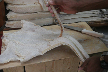 Cortando bacalao en el mercado de abastos de Sao Paulo, Brasil - Contenido educativo