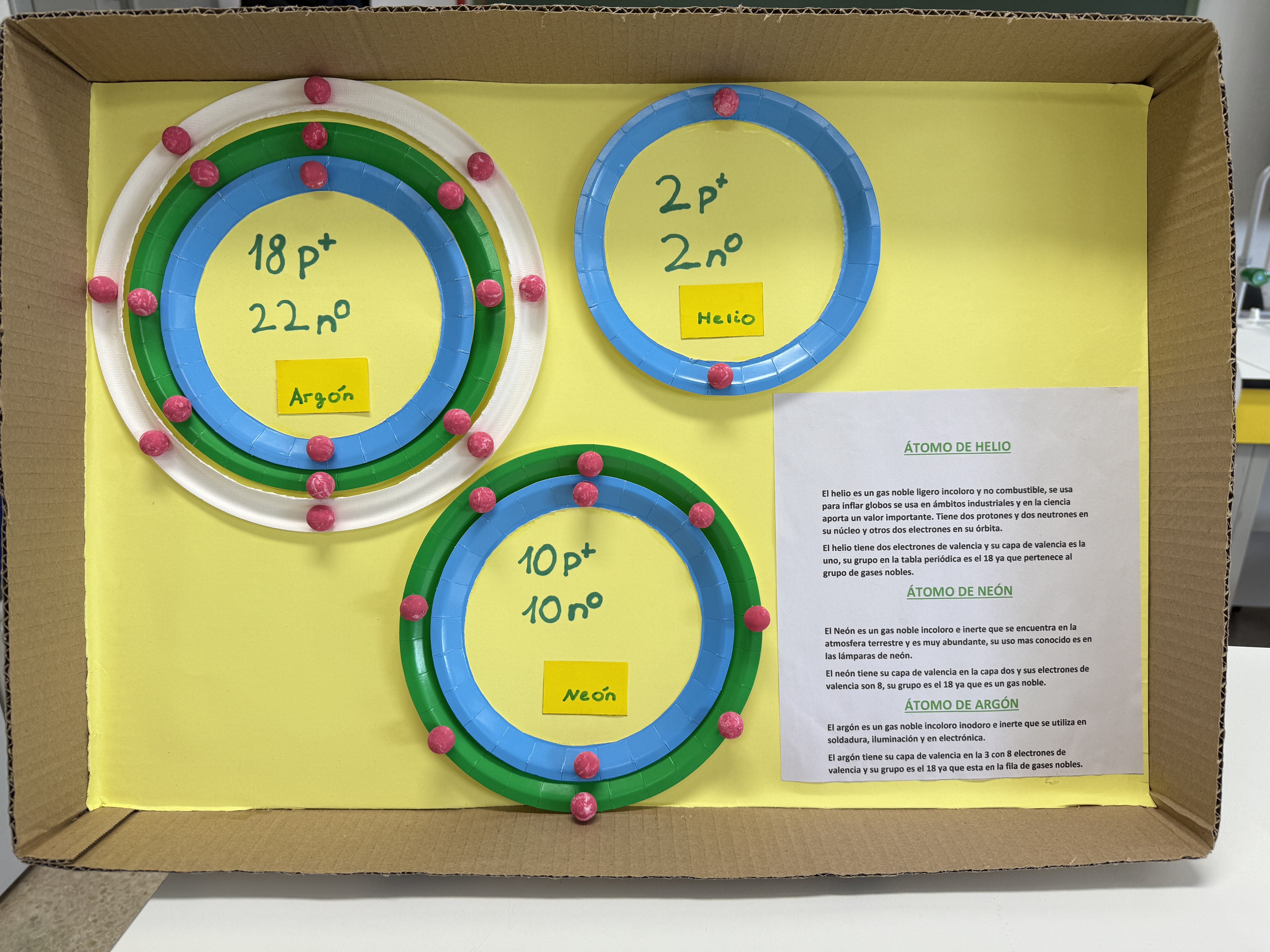 Maqueta de los átomos de helio, neón y argón según el modelo atómico de Bohr - Contenido educativo