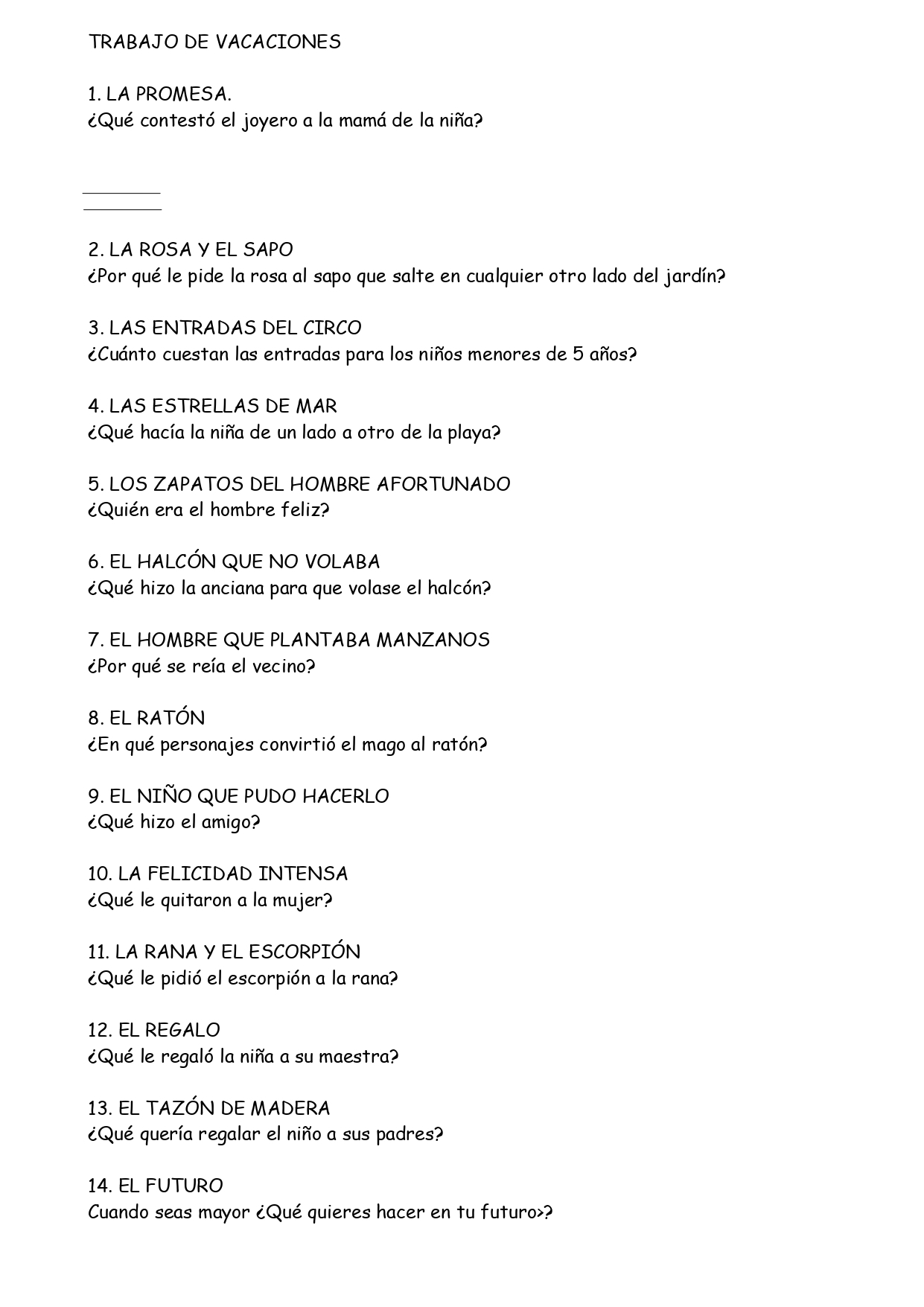 Preguntas del trabajo de Vacaciones - Contenido educativo