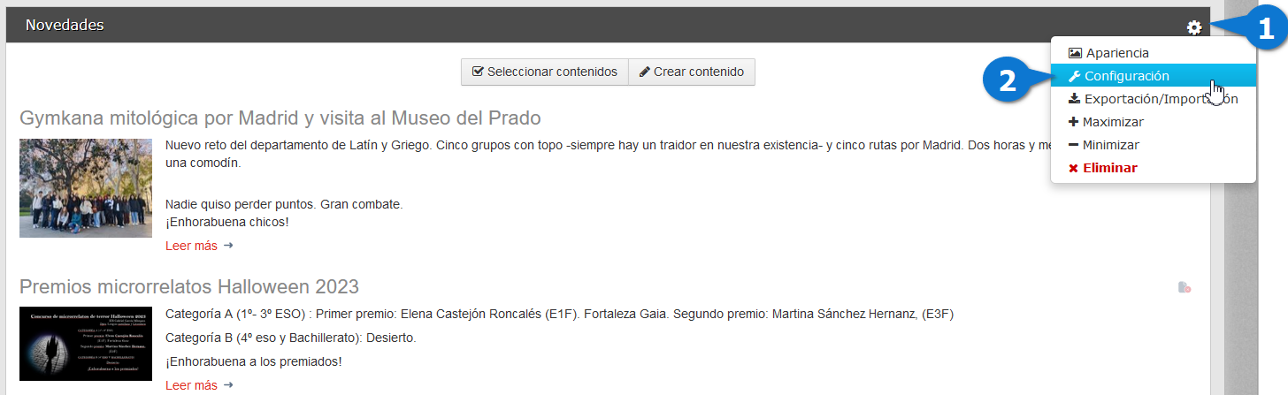 Contenidos de la lista
