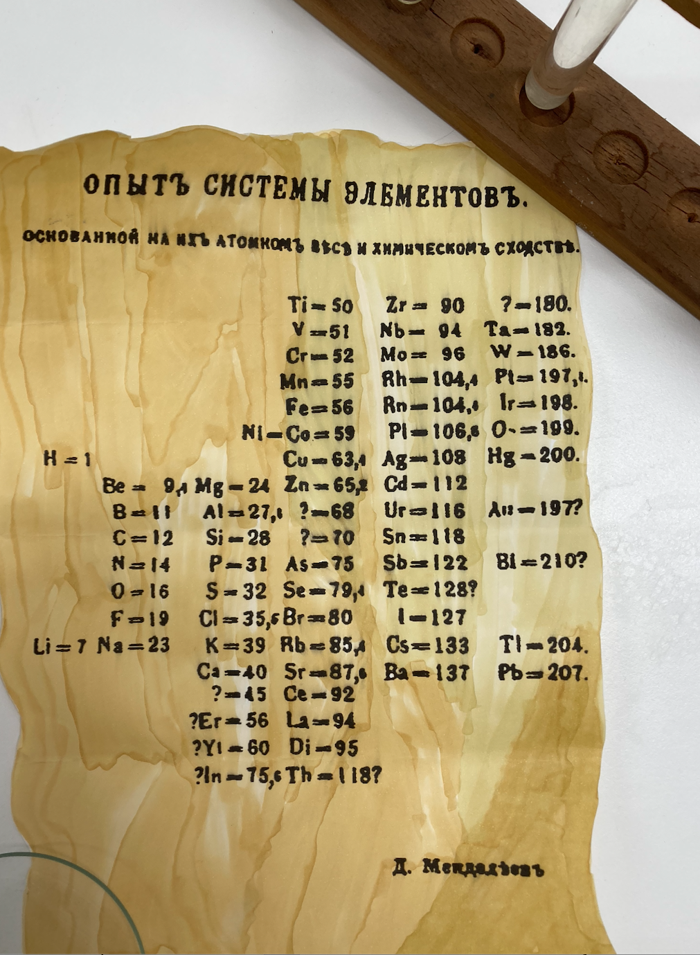 Réplica de la tabla periódica de 1869 propuesta por Mendeléiev