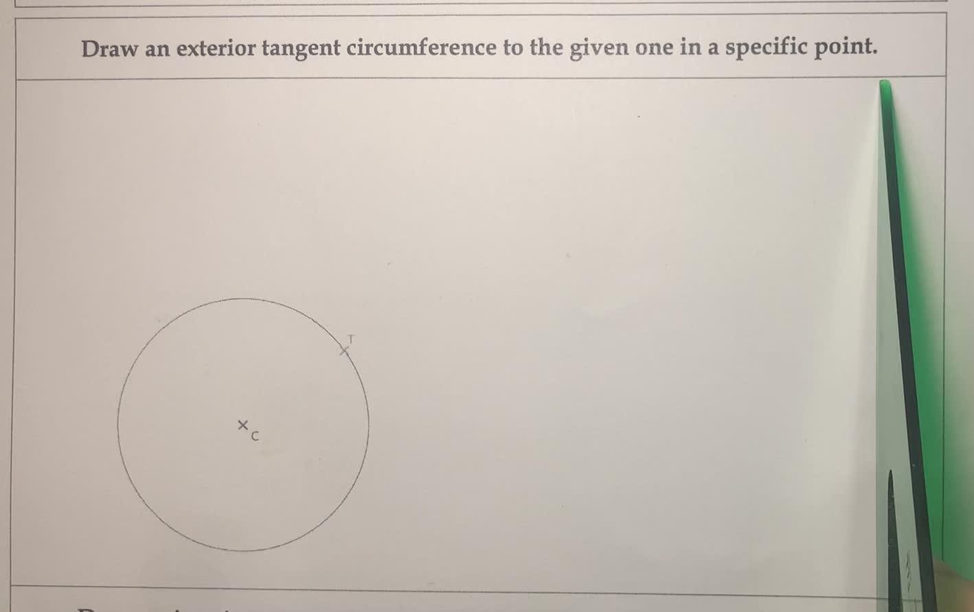 Exterior tangent circumference to the given one in a specific point.