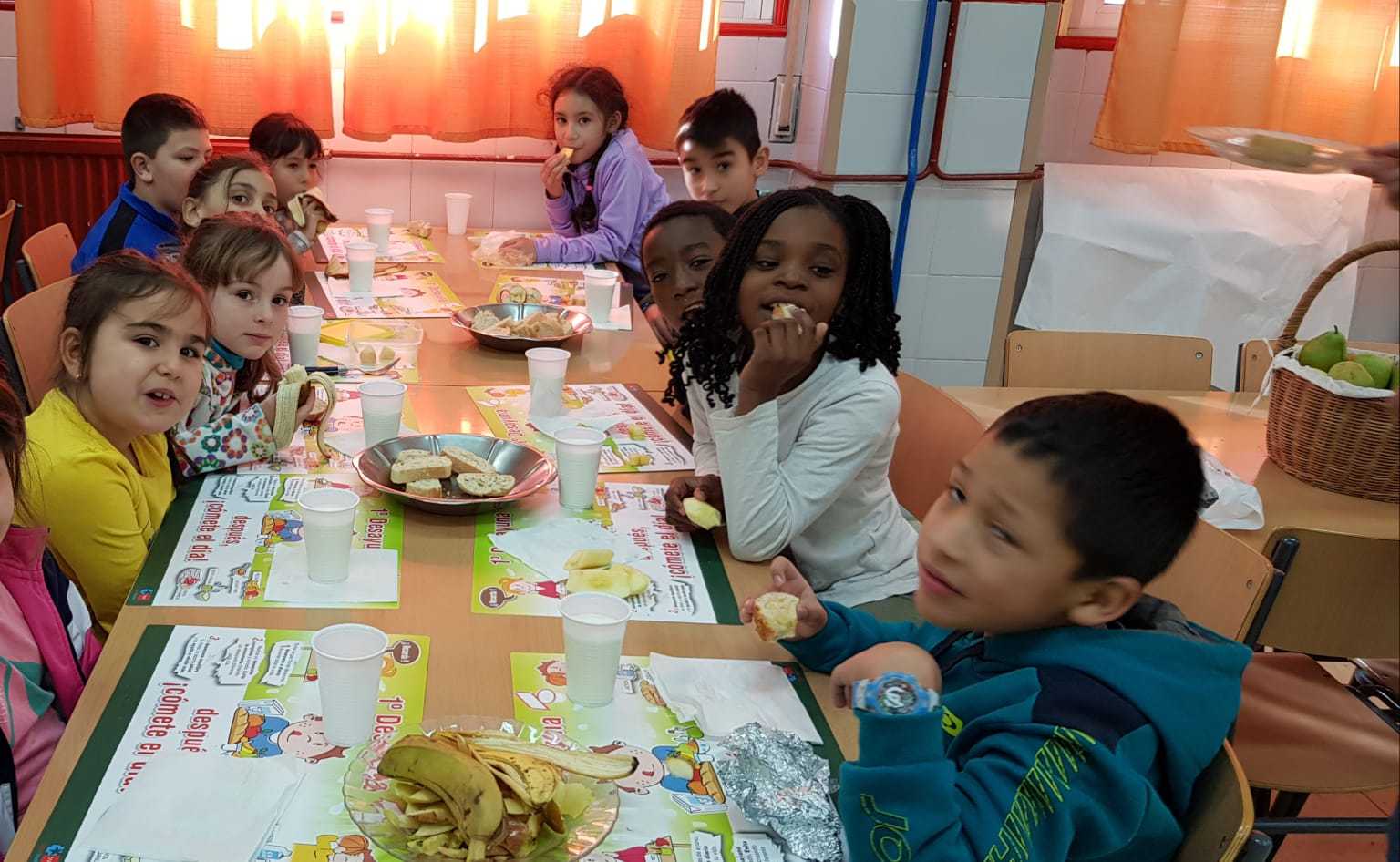Una de las actividades programadas para la semana de la convivencia es ”el desayuno saludable" Es una actividad donde los alumnos de 2° de primaria aprenden la importancia que tiene este momento. Necesitamos energía para afrontar el día. Para contarnos los alimentos que deberíamos desayunar, vienen las enfermeras del centro de salud. Ellas nos han recomendado, tomar algo de fruta, hidratos que pueden ser; las galletas, pan o cereales. y algún lácteo, como leche, queso o yogurt. Después de la charla informativa, hemos bajado todos juntos al comedor y hemos puesto en práctica lo aprendido desayunando todos juntos, 2° A y B. ¡Les encantó la leche, repitieron muchos y el pan con aceite¡ ¡Que rico!