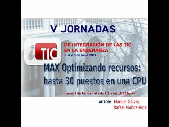 Ponencia de D. Manuel Gálvez Gálvez y D. Rafael Muñoz-Reja San Millán :" MAX Optimizando recursos" en las V Jornadas de Integración de las TIC en la Enseñanza 2013