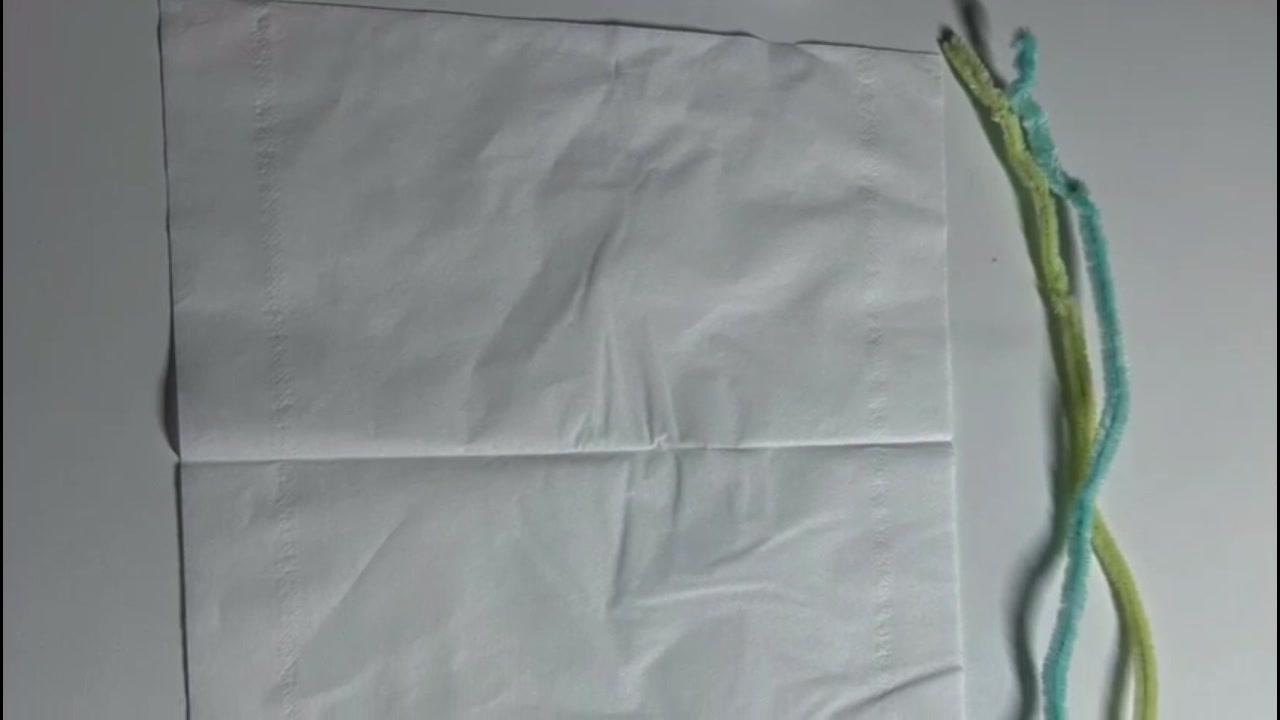 Primero cortaremos el pañuelo de papel a lo largo.