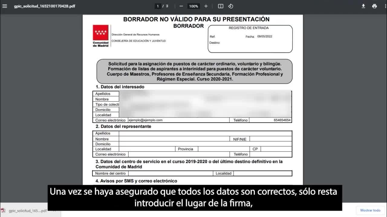 Una vez se haya asegurado que todos los datos son correctos, solo resta introducir el lugar de la firma.