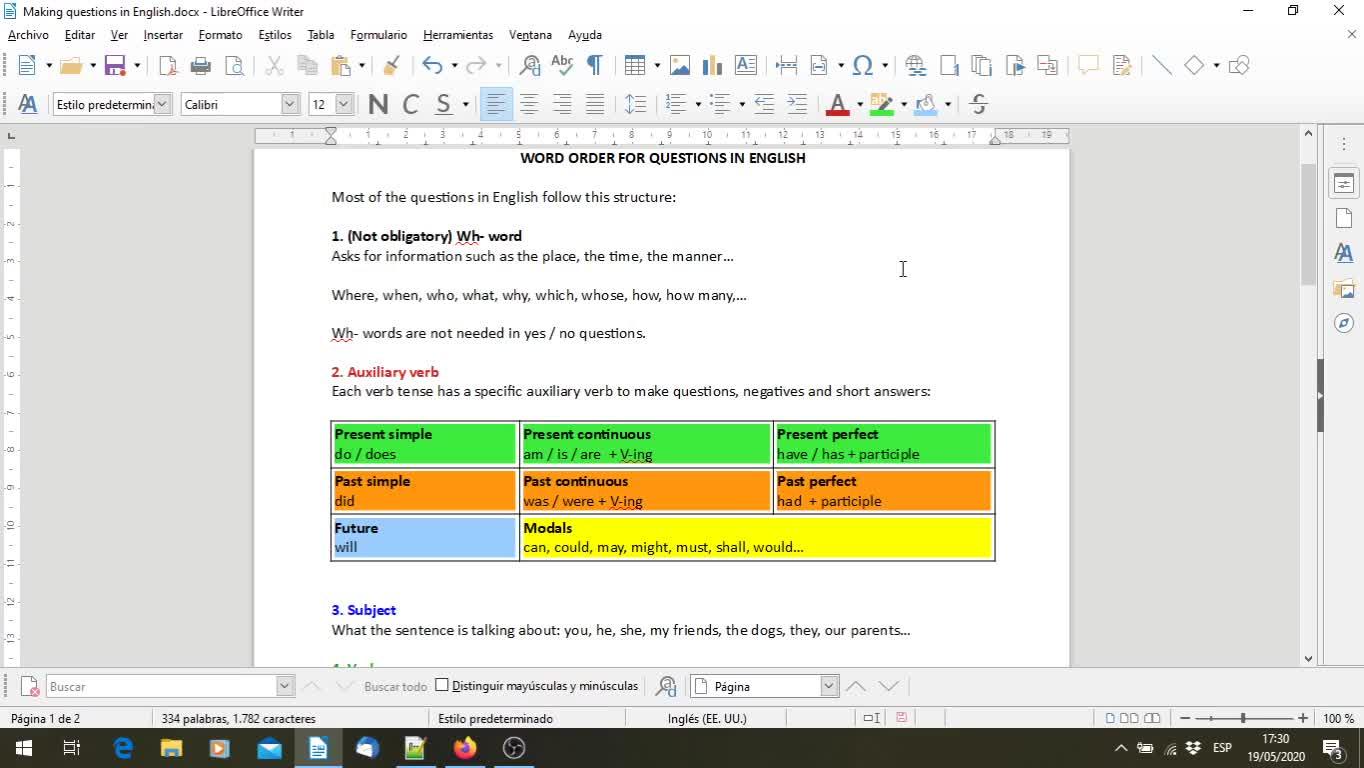 in English. Okay, so let's review a bit the word order. The order of the words in questions is very