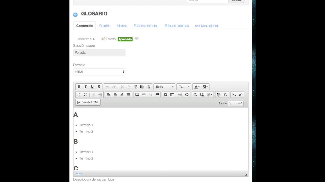 Tutorial para crear un glosario como capítulo en una wiki