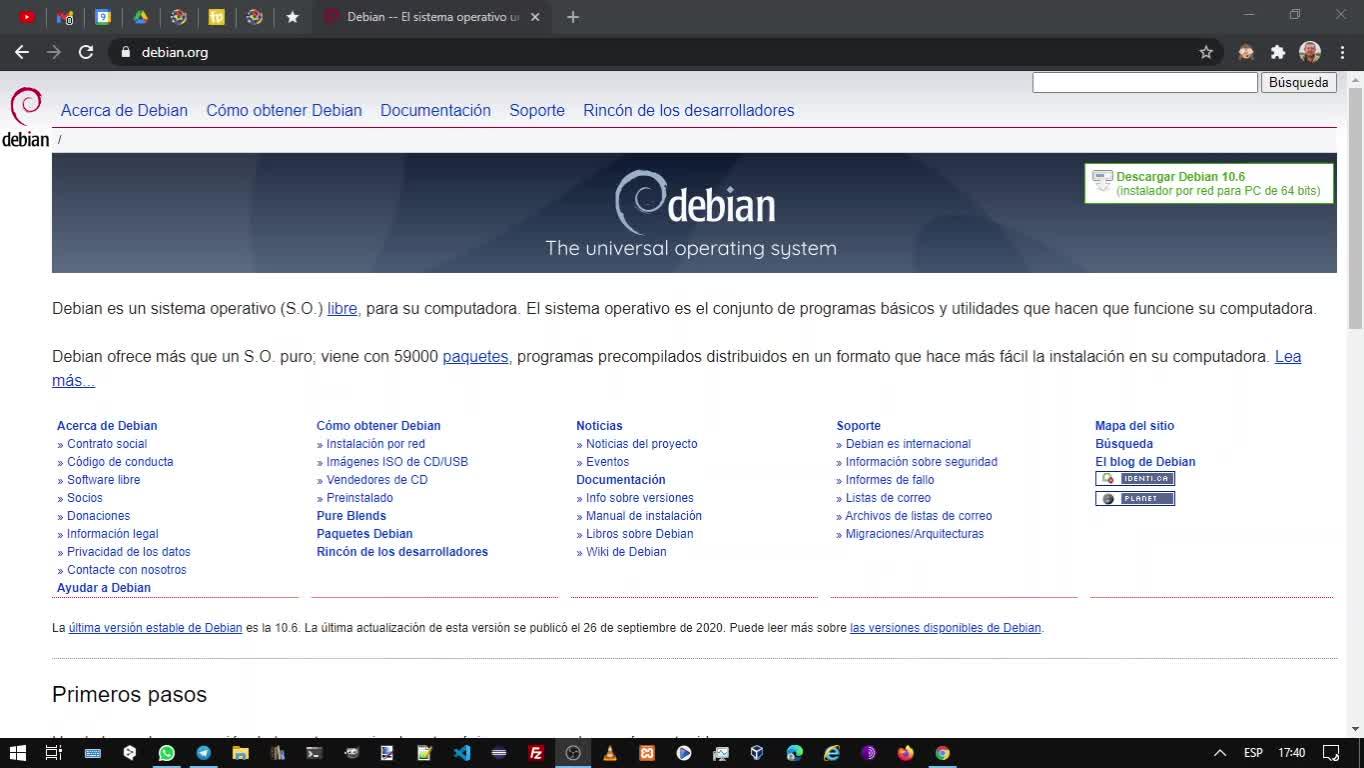 Vamos a ir directamente a su portal, debian.org, y la mejor manera es irnos directamente a bajarnos una imagen ISO para ponerla en marcha.