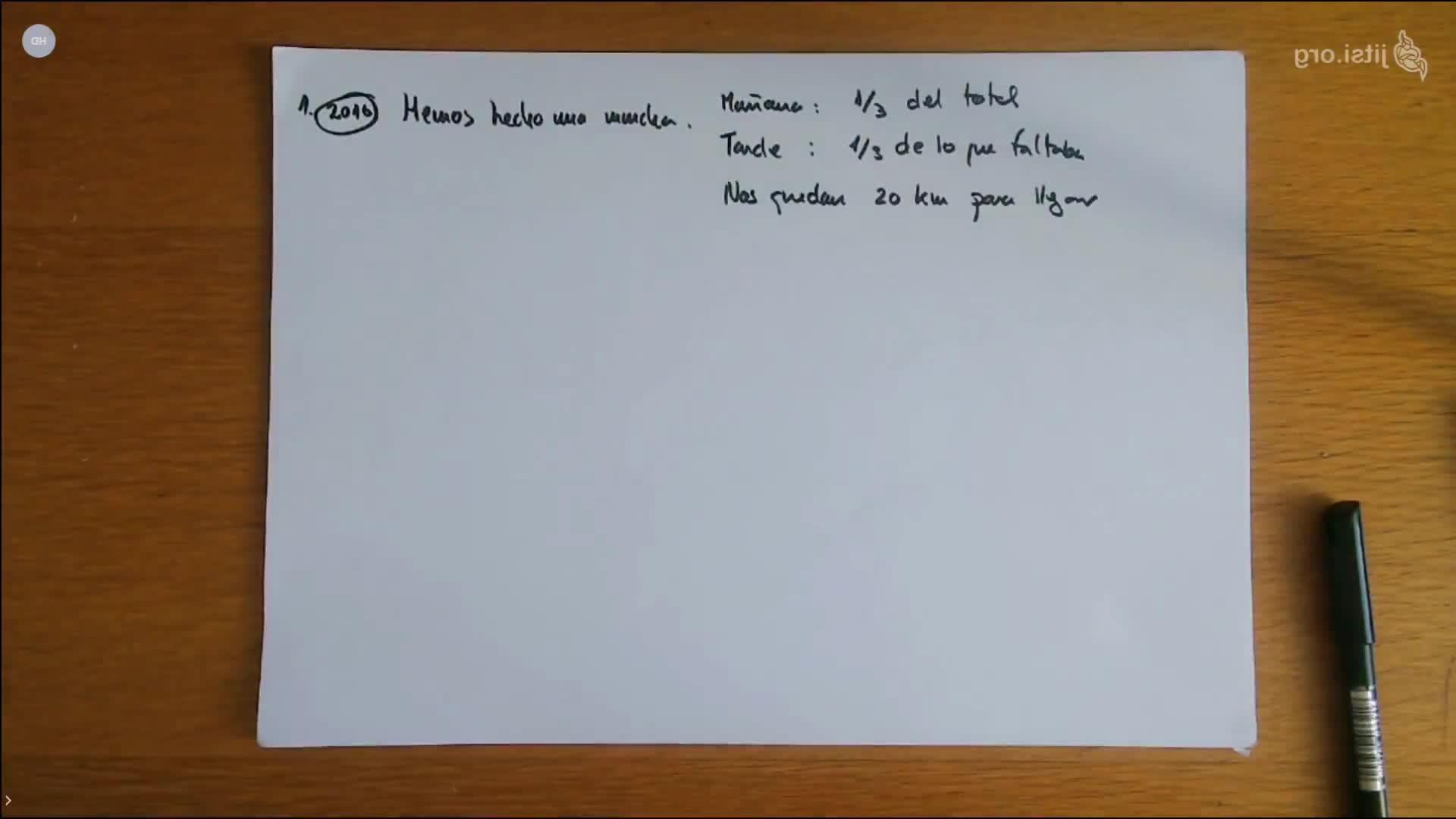 Para llegar a un destino y tal, hemos recorrido por la mañana un tercio.