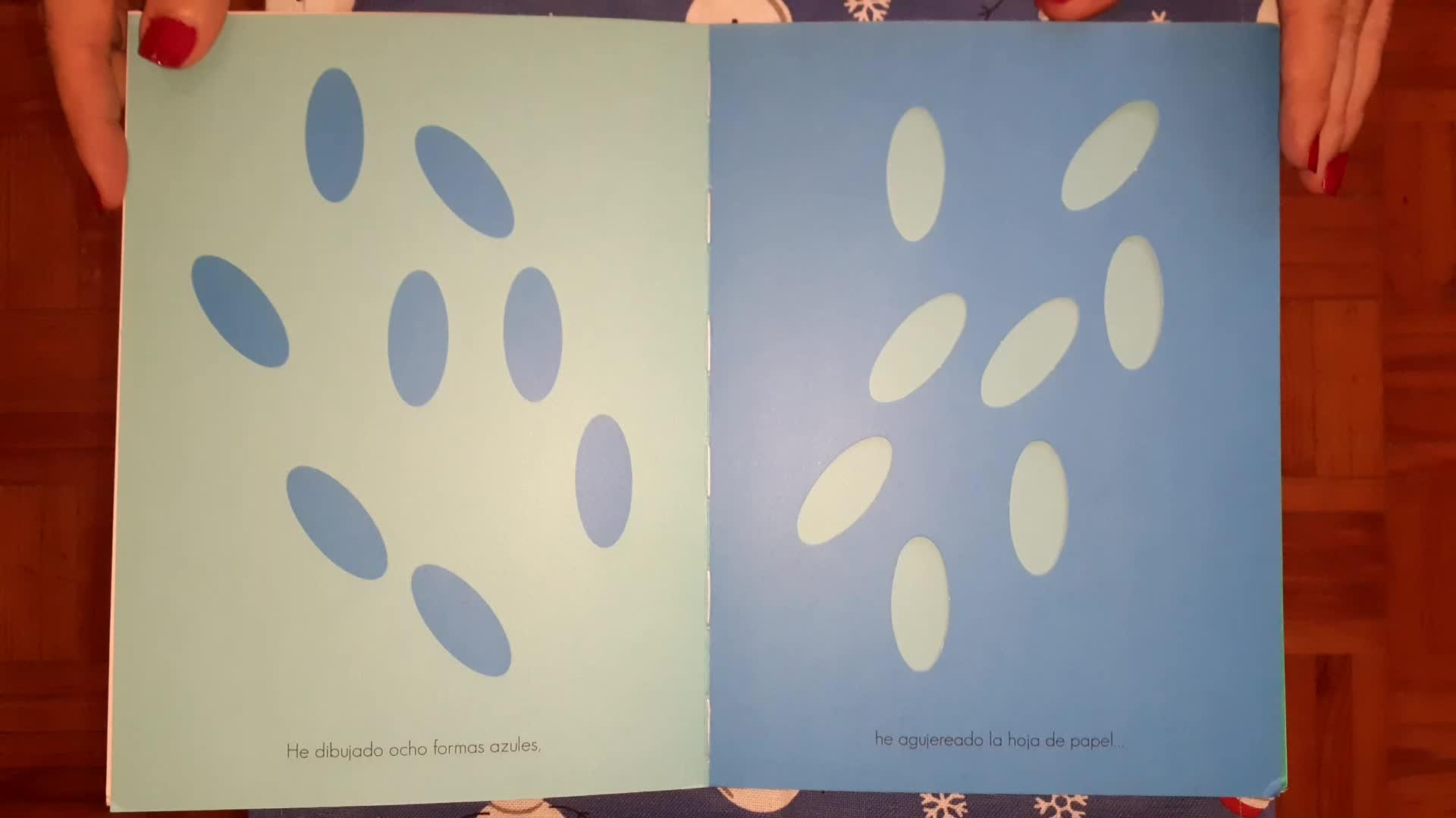 Después he dibujado cuatro formas rosas, he hecho tres agujeros ovalados y ha florecido un nenúfad.