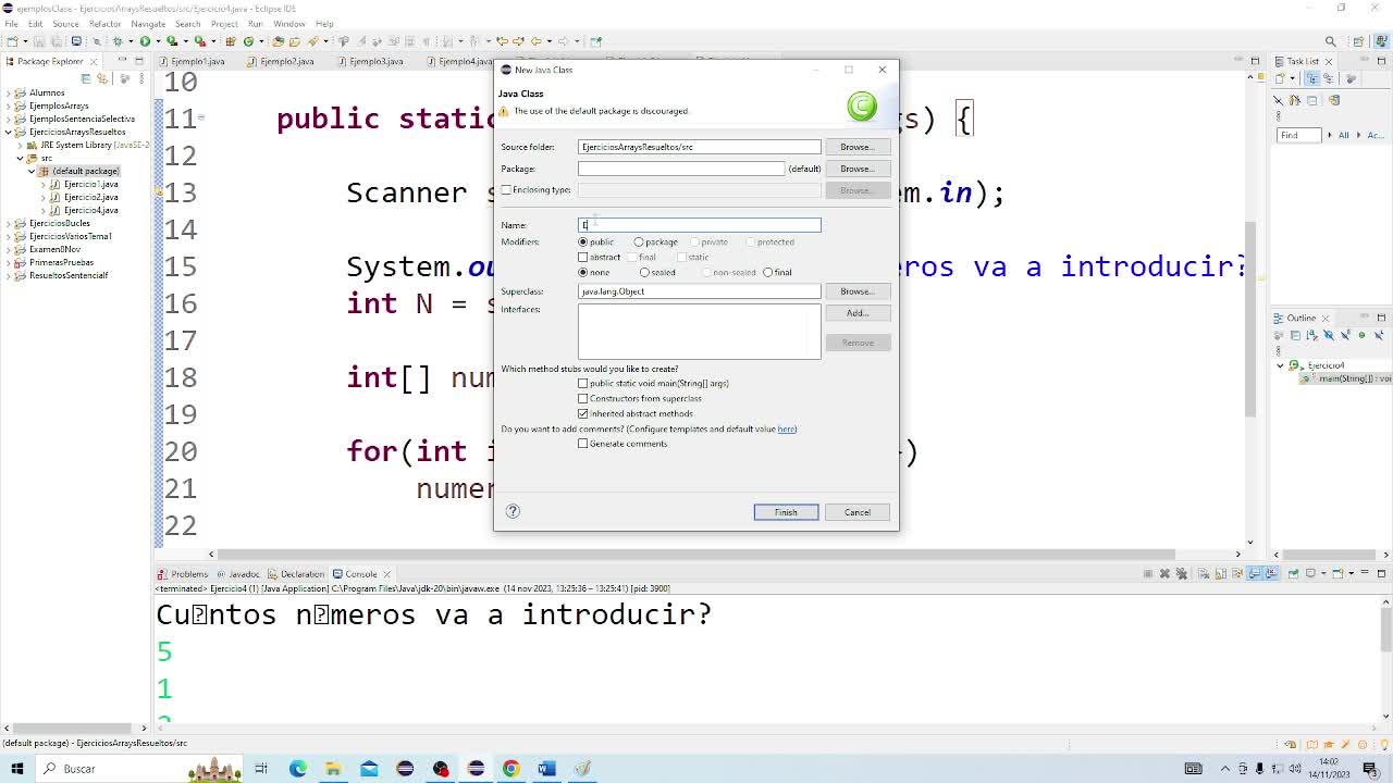 Vale, pues entonces números 1 y números 2, pues los dos van a ser dos arrays de n. Números 2 igual a new int de n.