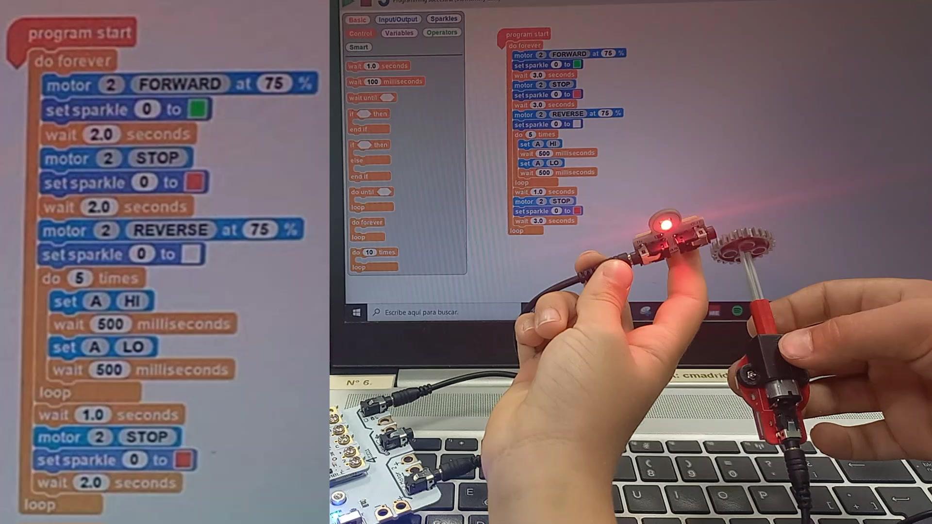Hemos programado un camión de la basura. Cuando lo encendemos, se va a ir para adelante con el color verde.