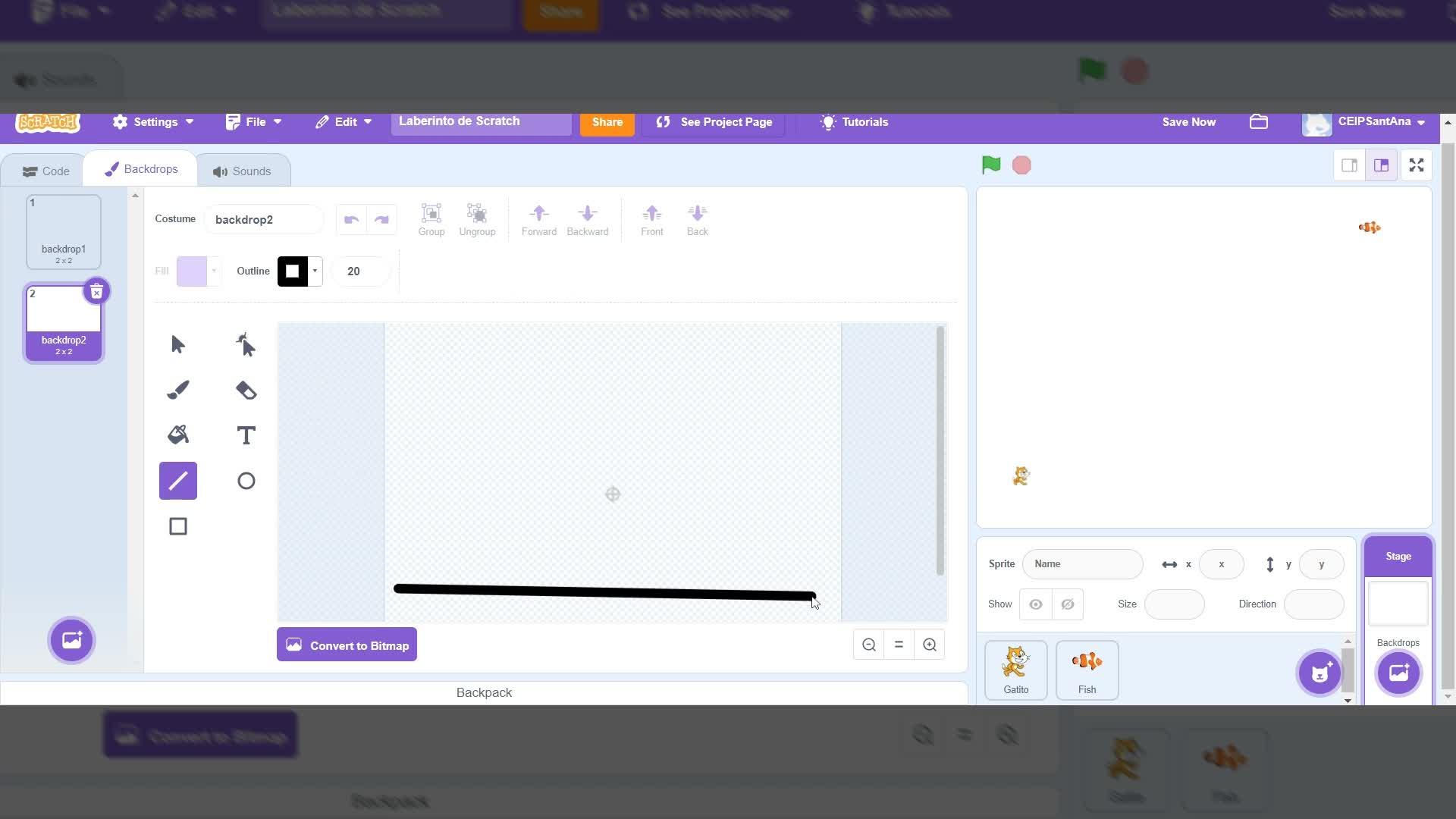 Bueno, hasta ahora teníamos creados los personajes y el personaje que es Scratchy y el objetivo que es coger el pez.