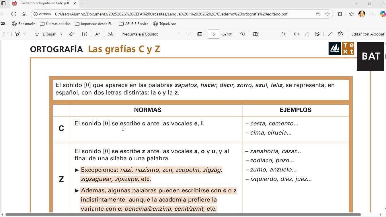 Y voy a hablar de las grafías C y Z, que es el segundo bloque de este libro que estamos viendo