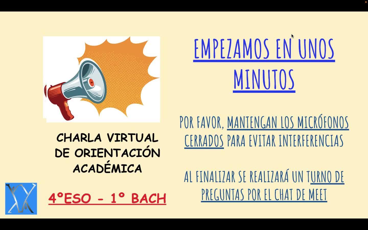 Muy bien, pues lo dicho, buenas tardes a todos, a esta reunión de orientación de los alumnos que están en cuarto de la ESO para ofrecerles las posibilidades que tienen de incorporarse a enseñanzas superiores, como bachillerato, como ciclos formativos.