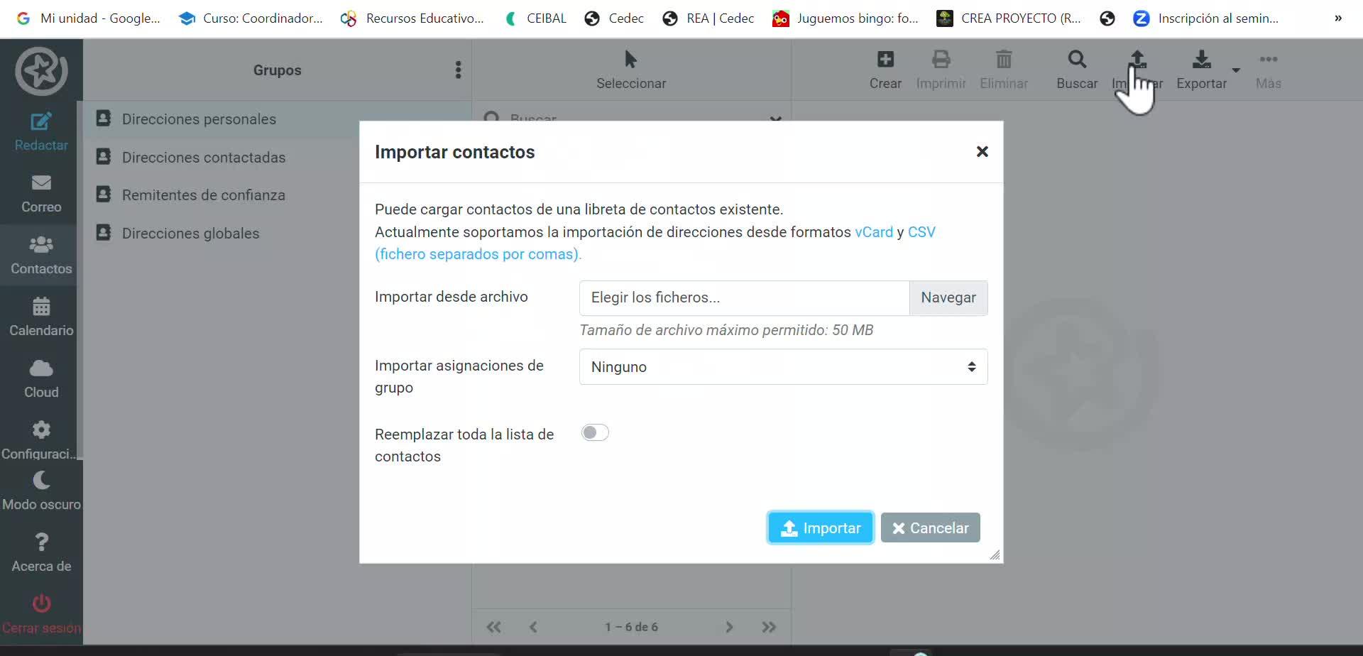 IMPORTAR CORREOS DE EDUCAMADRID - Contenido educativo