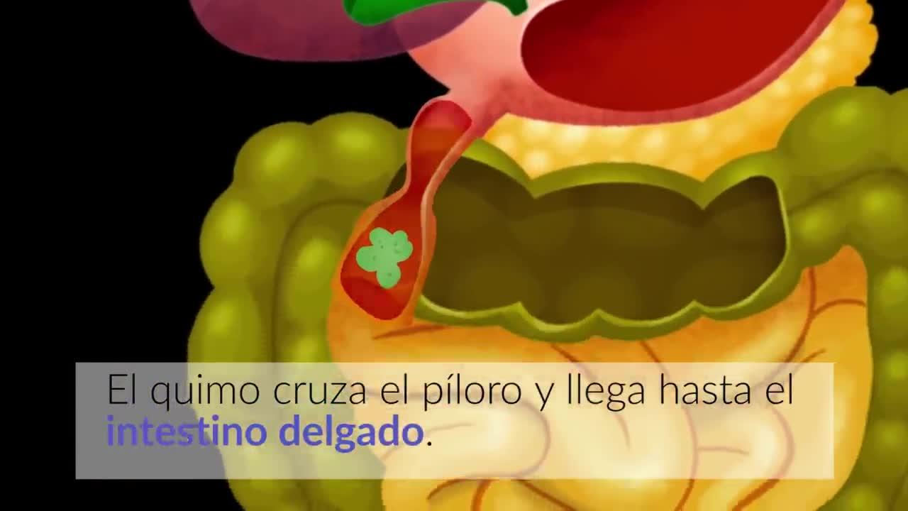 El quimo cruza el píloro y llega hasta el intestino delgado.